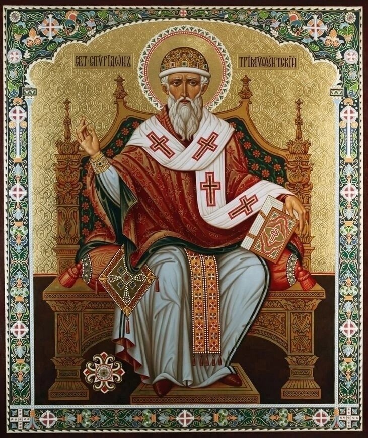 - Ра́дуйся, я́ко пе́рсть земна́я пропове́да твои́ма рука́ма Святу́ю Тро́ицу; ра́дуйся, я́ко из гли́ны изве́л еси́ о́гнь и во́ду во утвержде́ние догма́та Святы́я Тро́ицы.