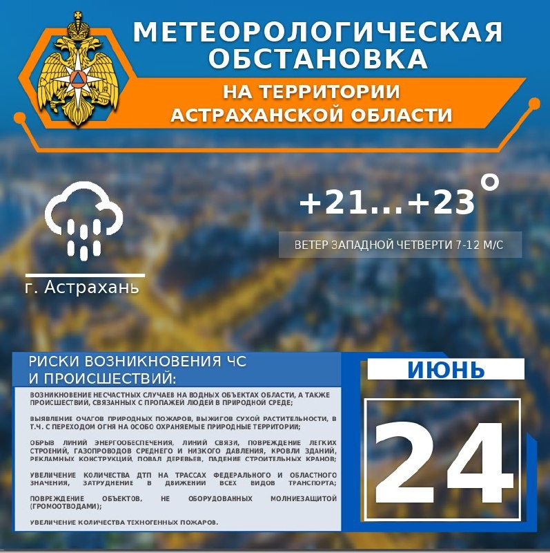 ⛅️По г. Астрахань облачно с прояснениями. ☔️Кратковременный дождь, гроза. 🌬Ветер западной четверти 7-12 м/с. 🌡Температура воздуха днем +21...+23°, ночью +14...+16°.