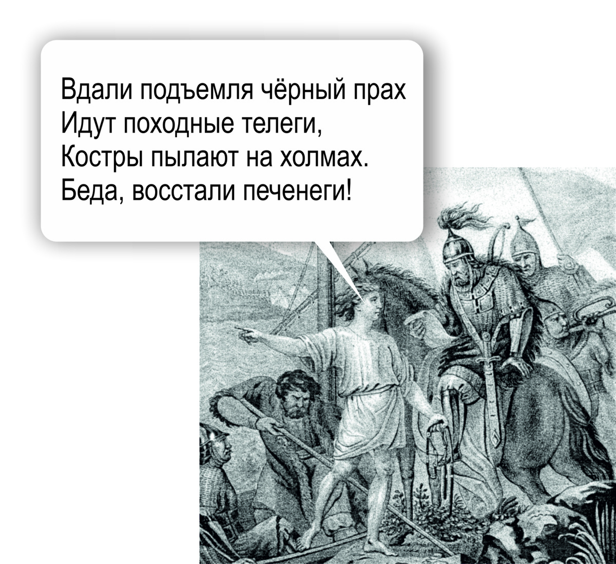 Претич сначала не хотел через реку переправляться, больно, говорит, много печенегов, боязно. Так я ему обещал, что Святослав вернётся, его мехом внутрь вывернет, если случится что. А печенеги, что печенеги, тоже люди... со вшами.