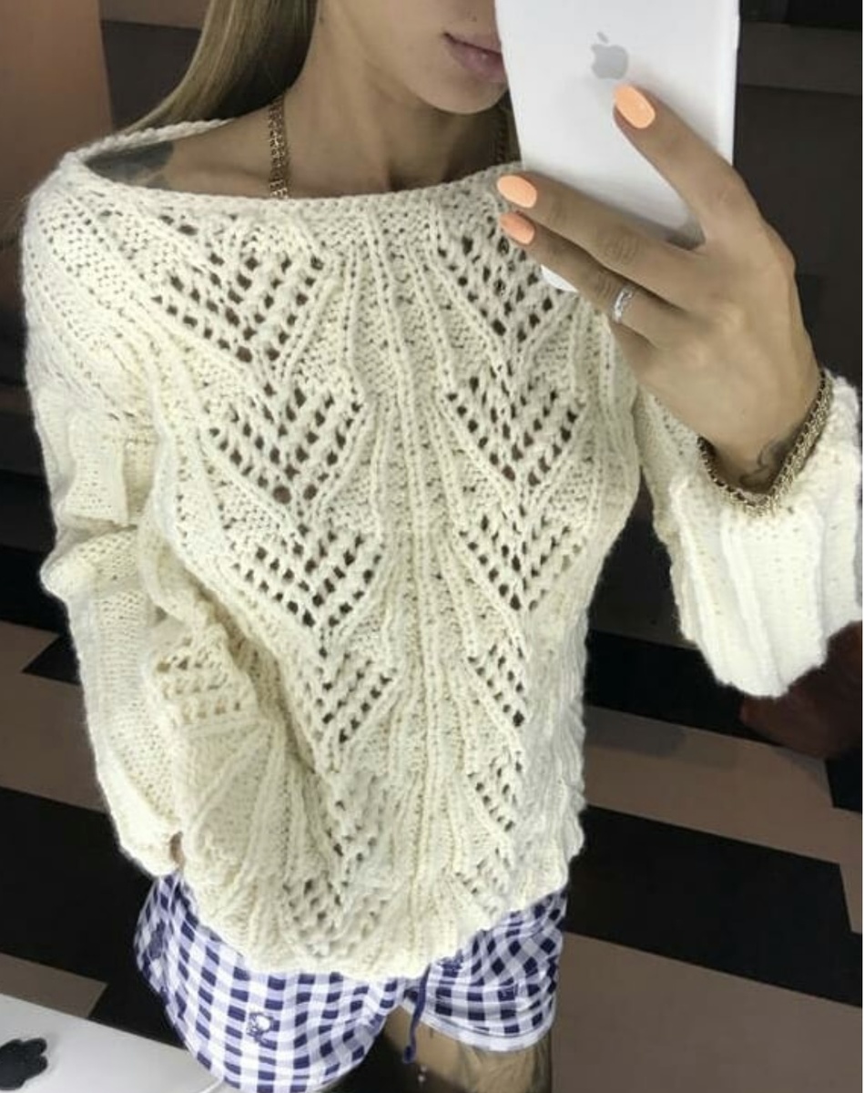 1 Ажурный пуловер из тонкой лентовидной пряжи . 2 Облегающий пуловер с широкой ажурной планкой . 3 Скромный элегантный пуловер , с короткими рукавами . 4 Изящный летний пуловер , с воздушными ажурными ромбами . Новые ажурные узоры , в мягких натуральных расцветках . Они лишний раз , подчеркнут Ваше обаяние и женственность . Всем огромный Приветик 👋 Кто заглянул , а не про шел мимо , на мой позитивный и продуктивный Канал . Всех Благодарю 🙏, от всей Души , Кто читает , подписывается и комментирует - уделяя минутку своего времени . Ваши лайки 👍это самый лучший подарок 💝 для меня . Сегодня , Мы по говорим о Моделях - связанных спицами . Как то Лето , пока не задалось , сейчас прохладно , и Я решила принести , прекрасные Пуловеры , в нежных тонах , изящные и привлекательные . По летели смотреть , новые проэкты : Модель 1: Ажурный пуловер из Толстой лентовидной пряжи с золотым блеском ( вяжется очень быстро ) Я исполняла эту Модель - Фото предоставила . Пуловер - продан