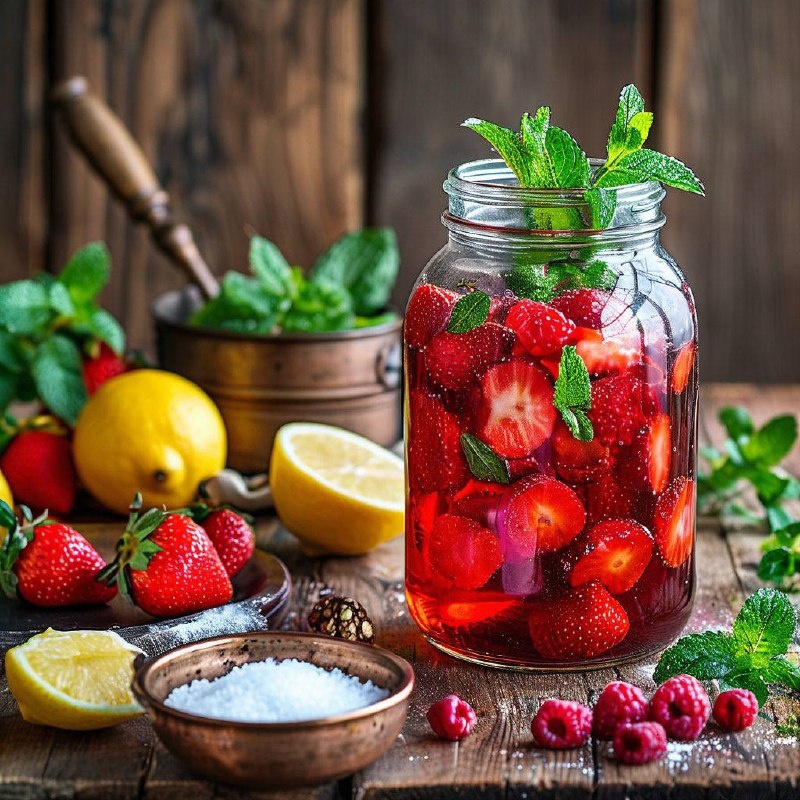 🍓 КОМПОТ ИЗ КЛУБНИКИ С МЯТОЙ И ЛИМОНОМ НА ЗИМУ #умныезаготовки #заготовки #заготовкиназиму Яркий, с идеальным балансом сладости и кислинки — вкус лета в каждой капле! ⏳ Время приготовления: 40 мин + стерилизация 🍶 Выход: 1 банка 3 л 🌡️ Хранение: до 1 года 🛒 ИНГРЕДИЕНТЫ ▫️ Клубника (плотная) — 500 г ▫️ Сахар — 200 г ▫️ Мята свежая — 1 веточка ▫️ Лимон — 50 г (2-3 кружка) ▫️ Вода — 2,5 л 👩 ПОШАГОВЫЙ РЕЦЕПТ 1️⃣ Подготовка ягод 1. Клубнику перебрать, удалить чашелистики 2. Замочить в холодной воде на 10 мин, промыть 3. Лимон ошпарить, нарезать кружками 2️⃣ Сборка банки 1. В стерилизованную банку уложить: - Клубнику - Кружки лимона - Веточку промытой мяты 3️⃣ Приготовление сиропа 1. Воду с сахаром довести до кипения 2. Залить ягоды, оставить на 30 мин 3. Слить сироп, прокипятить 3 мин 4. Повторно залить в банку 4️⃣ Закатка 1. Герметично укупорить крышкой 2. Перевернуть, укутать на 24 часа 💡 ВАЖНЫЕ НЮАНСЫ • Используйте только целые ягоды без повреждений • Для насыщенного вку