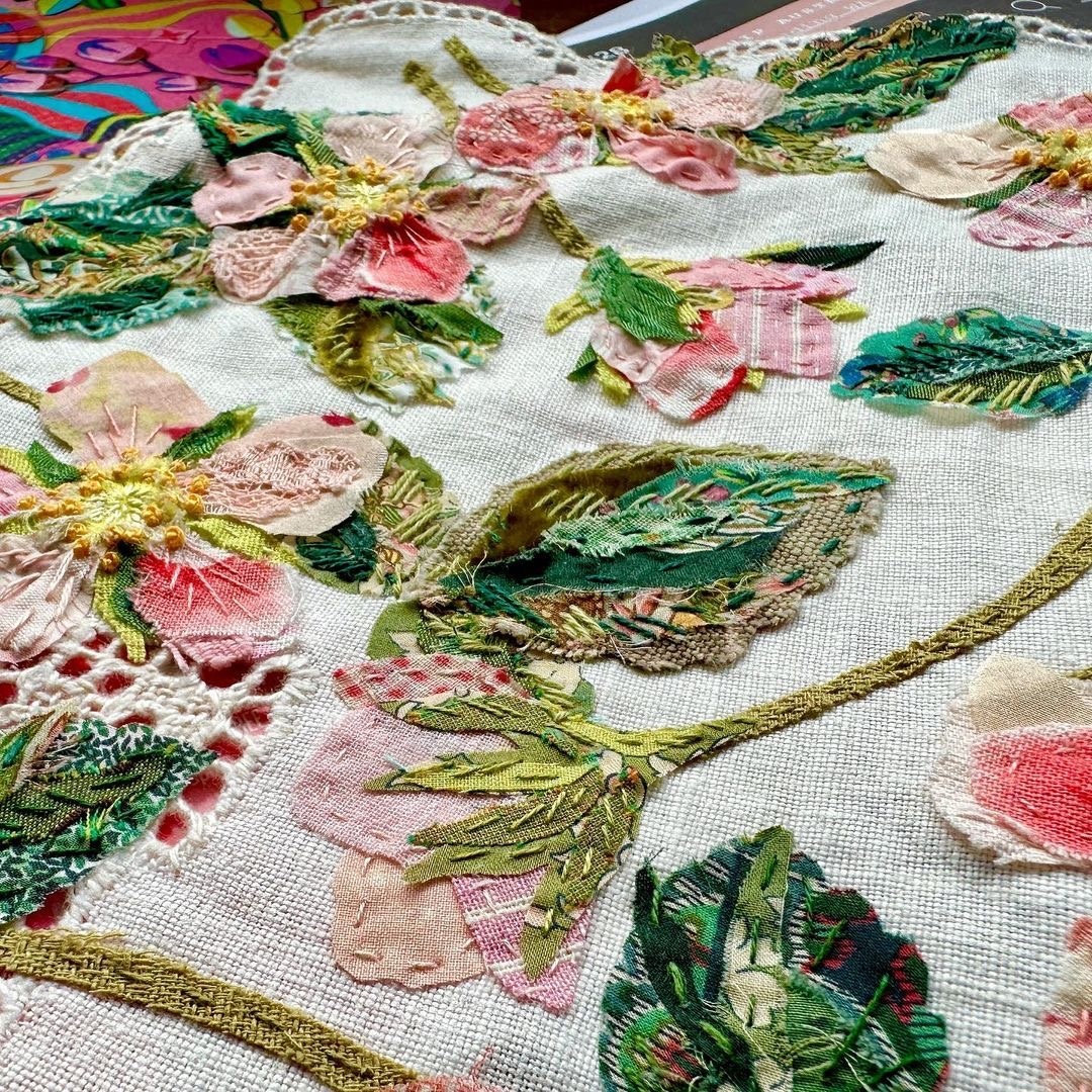 Вчера с сестрой долго обсуждали трагедию с ее любимой блузой. Да, с объемными цветами. И да, розового цвета. Очень летнюю, нежную и любимую. И вот страдания по поводу пятен. В итоге она вышивает на пятнах дополнительно цветы. Скажу честно, что тут угадать сложно результат. Ведь иногда оттенки мулине и не подойдут. Поэтому, чтобы спасти любимую блузу или платьице ( я вот сожгла утюгом) можно выбрать аппликацию. Собрав старые кусочки тканей, лент, соединям их обычными стежками и очень редко гладью. Работы не мои. Но настолько восхитительны, что не могу не поделиться. Вот такая вышивка может и правда спасти старую вещь при переделке. Или добавить очарования любимому, но старому сарафану. Конечно, и на новой юбке, блузке такой цветок будет хорошо смотреться. А это ирис. Разве можно устоять?