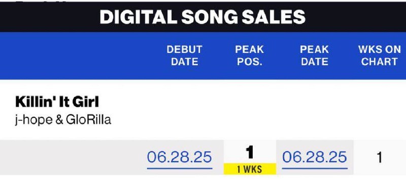 🍊 "Killin' It Girl" дебютировала на 1 месте в чарте Billboard Digital Song Sales