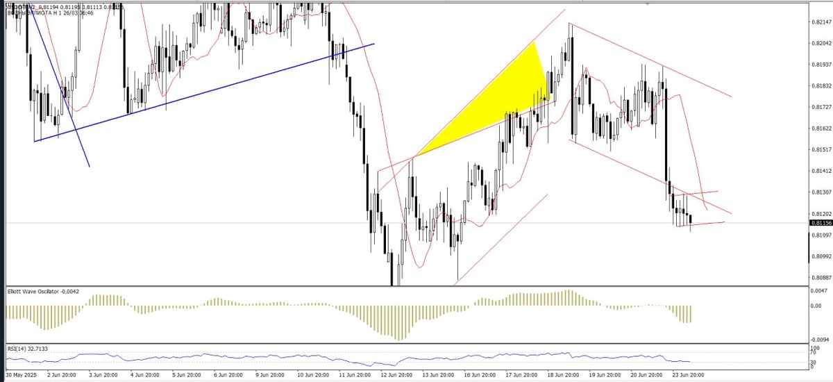 USDCHF Основные признаки модели продолжения движения "флаг": - непродолжительная консолидация, после сильного движения - ускорение с прорывом линии возврата - осцилятор Эллиотта демонстрирует уверенное движение и высокую скорость изменения цен