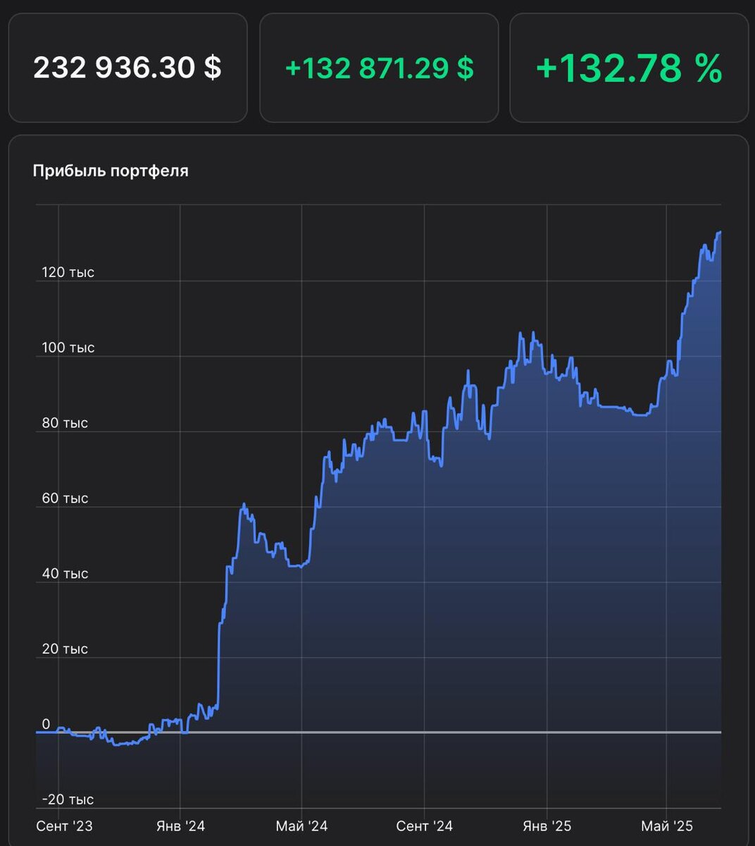 - Сегодня — $232,936 (+132,9% за 22 месяца)