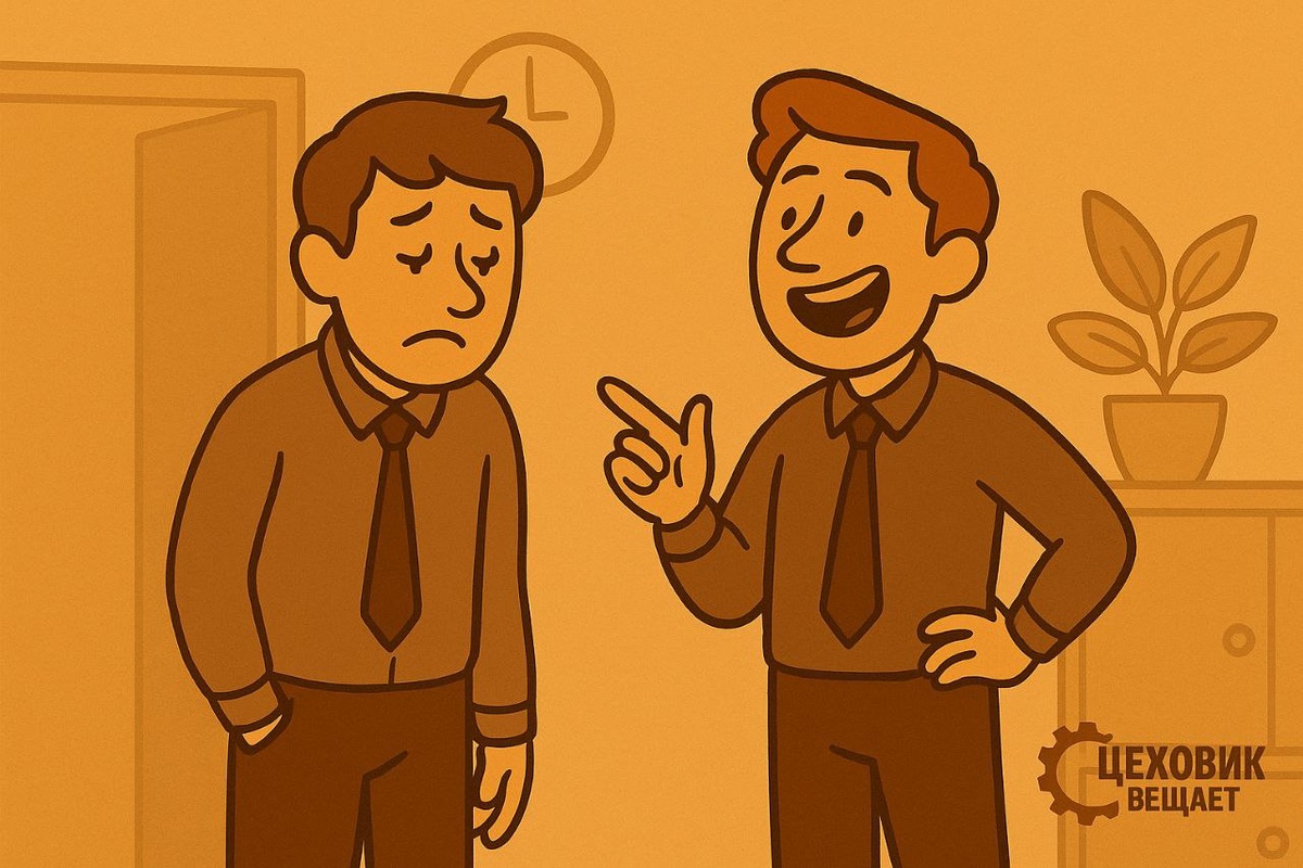 Встречаются два сотрудника. Один другому: — Я сейчас был у шефа, и у меня две новости. Одна хорошая, другая — плохая. С какой начнём? — Давай с плохой. — Меня уволили. — А хорошая? — И тебя тоже! #Индустриальный_юмор Цеховик вещает