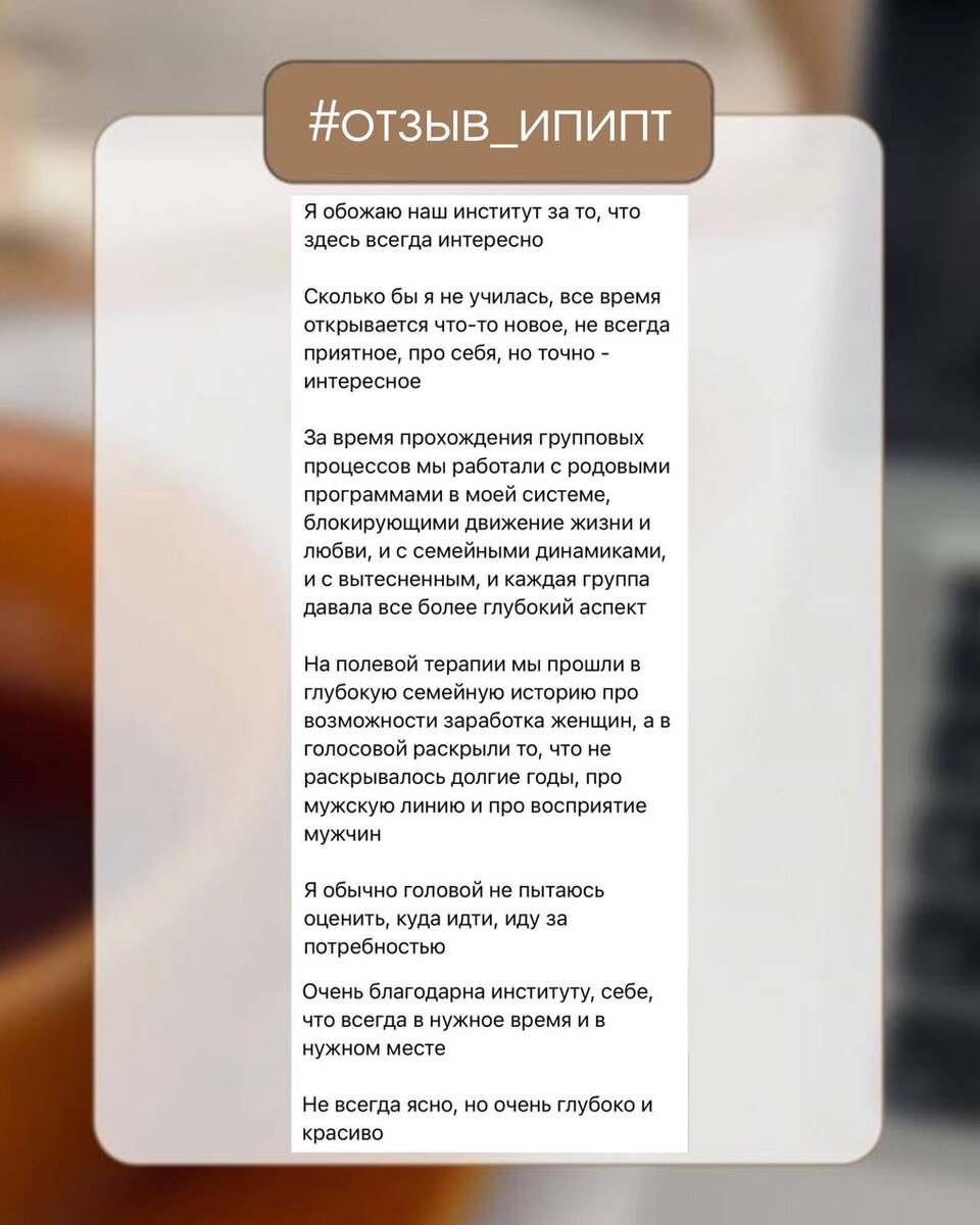 Очередной #отзыв_ипипт на программу «Полевая терапия» подоспел как раз вовремя, ведь уже совсем скоро — 26 июня — мы встречаемся с вами на II модуле программы!