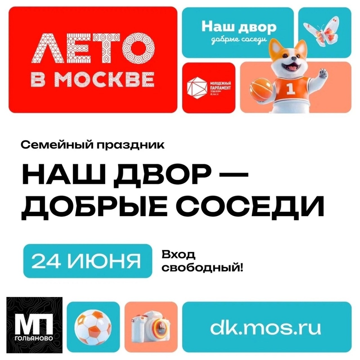 ✏️ Подслушано в Гольяново: Уже сегодня ждём вас на семейный праздник «Наш двор - добрые соседи», с 17:00 до 20:00!
