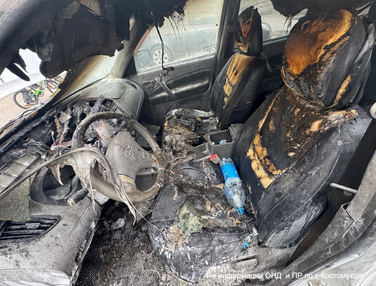 Собирался отъехать, а из-под педалей посыпались искры: в Костомукше тушили внезапно загоревшийся автомобиль
