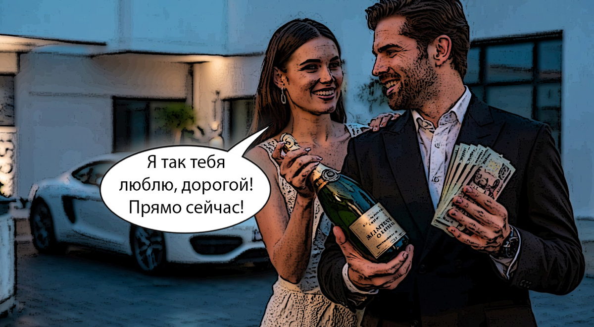 А есть другой тип. Мальчонка (по уровню развития) 25 лет, кичившийся квартирой в областном центре и собственным магазином, укативший прямо из ресторана с незнакомой ему ранее девицей в столицу на «шоп-тур», а потом, на радостях (ее и своей), три дня не вылезавший с той самой девицей из отеля, обещая в пиковые моменты радости то небо в алмазах, то шубу на плечи…