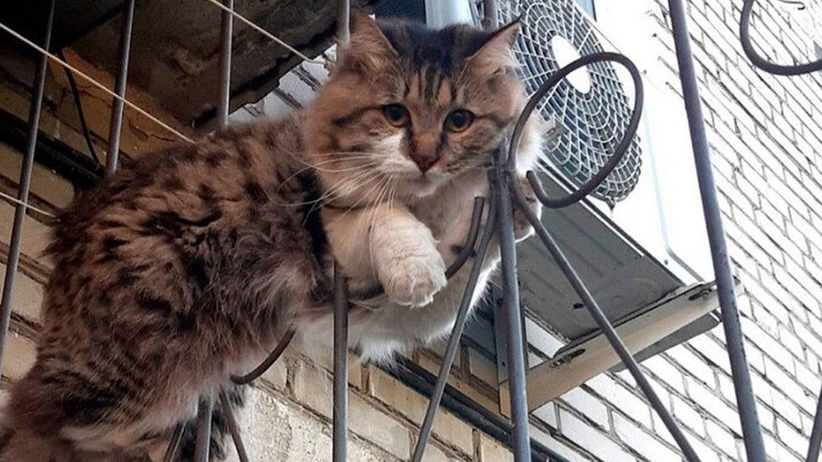 В Биробиджане спасли кота, который застрял в решетке балкона