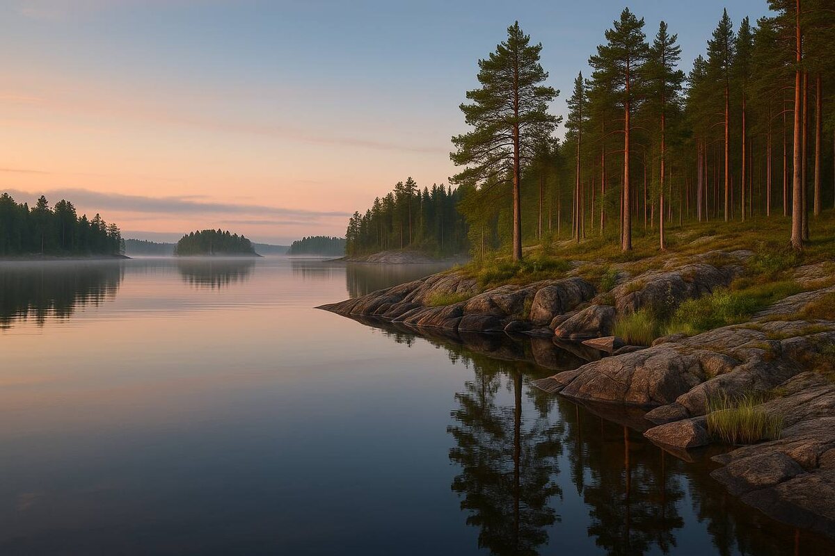 Если ты устала от суеты и шума, Карелия — идеальное место, чтобы выдохнуть. Здесь нет жары, зато есть озёра, леса, тихие деревни и бесконечный свет северных ночей. Всё дышит сосной, влагой, камнем — и ты тоже начинаешь дышать иначе. Это место про тишину, неспешность и чай у окна деревянного домика с видом на гладь воды.