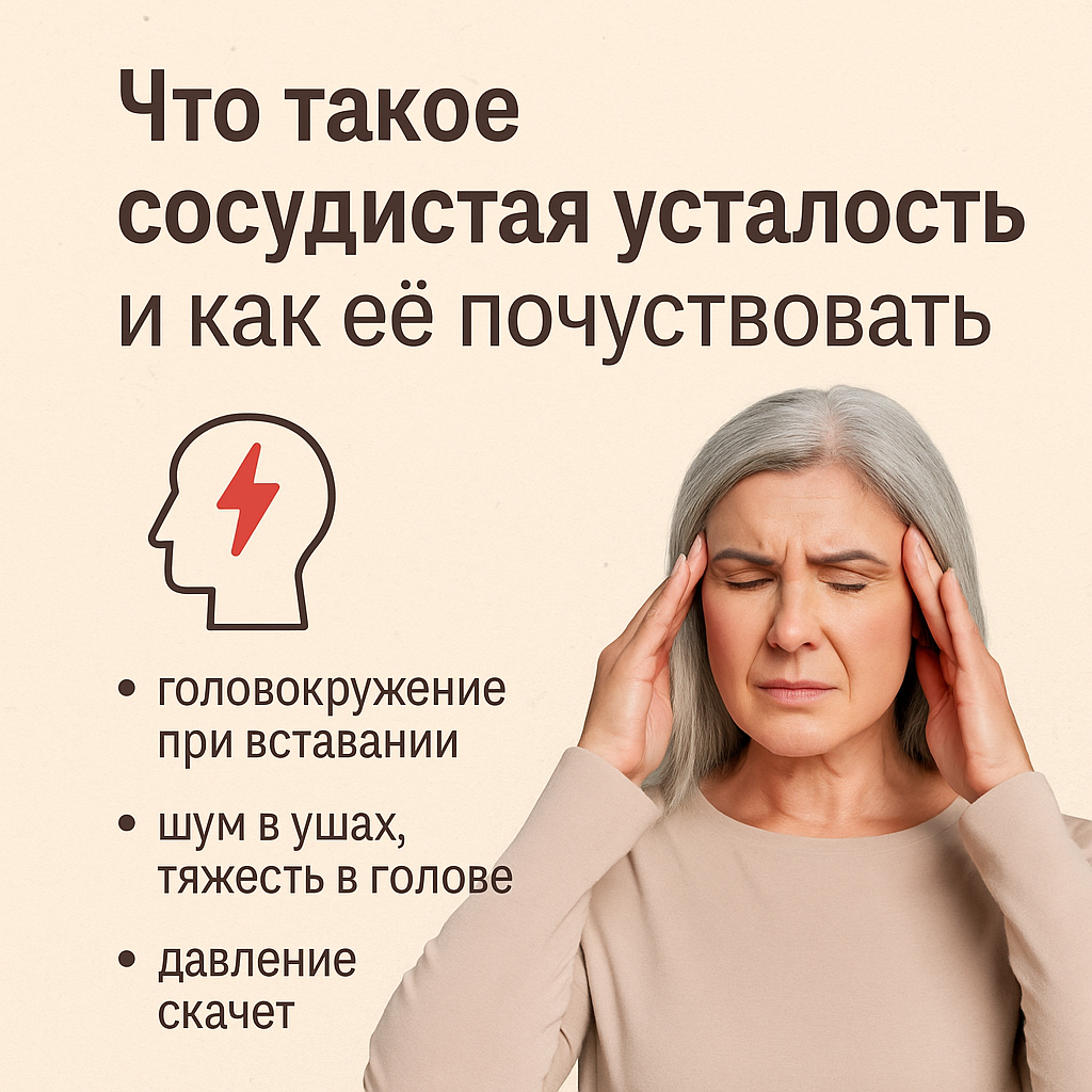 Но за этими словами может скрываться сосудистая усталость — состояние, которое редко ставят как диагноз, но многие женщины после 50 его хорошо знают по ощущениям. Это снижение тонуса и гибкости сосудов, особенно мелких капилляров, которые питают мозг, сердце, мышцы.