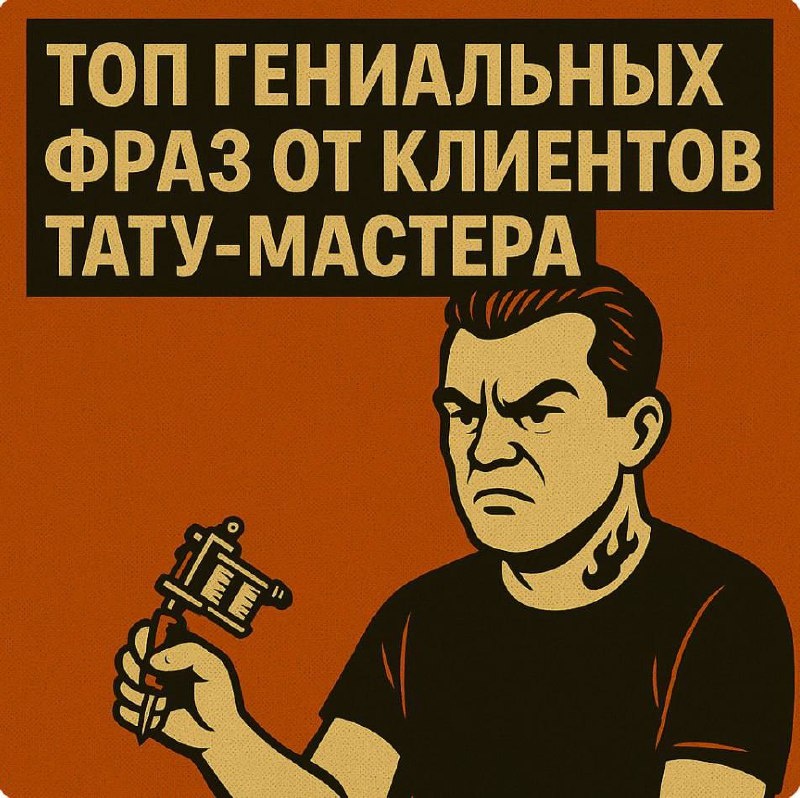 Друзья, мы тут обсудили с нейросетью список заядлых вопросов от клиента. И прикинули как можно было бы отвечать если вы дерзкий мастер. Получилось смешно, оригинально, но так лучше не надо) 1. «А чё, алкоголь правда разжижает кровь?» 🧠 Ответ: — Нет, брат, он разжижает твои решения. Через час ты захочешь тату с именем бывшей и сердцем на попе. 2. «Можно эскиз прям перед сеансом придумать?» 🧠 Ответ: — Конечно, я же печатная машинка по желаниям. Сидим, рисуем, ждём вдохновения от Вселенной. 3. «Набьёшь мне рукав, но чтоб за один сеанс?» 🧠 Ответ: — Ща, только время замедлю, себе два тела отращу и Red Bull'а в вену закачаю. Погнали! 4. «Мне больно, давай перерыв каждые 10 минут» 🧠 Ответ: — Так давай я тебе тату в стиле "Азбука Морзе" вальну. 5. «Я тут в солярии был, но ничё, да?» 🧠 Ответ: — Да не, норм. Кожа как корочка с курицы — цвет ляжет ровно, если повезёт. Хотя нет. 6. «Заживёт и можно будет поцарапать, да?» 🧠 Ответ: — Конечно, особенно если хочешь эффект «карта мира 1854