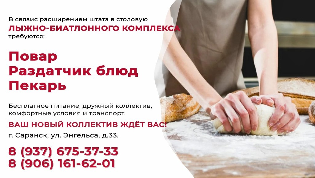 В связи с расширением штата, в столовую Лыжно-биатлонного центра требуются: