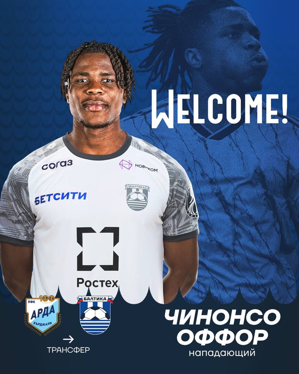 👋 WELCOME, CHINONSO! Между футбольными клубами «Балтика» и «Арда» достигнута договорённость о трансфере нападающего Чинонсо Оффора. Свою футбольную карьеру Оффор начал в 2012 году в Лагосе, а в 2017 году перебрался на Северный Кипр, где выступал за «Бинатли». Следующим шагом для Чинонсо стал переезд в Латвию, в 2019 году он подписал контракт с латвийским клубом «Даугавпилс», где провел 23 матча (3+10). В 2020 форвард перебрался в другой латвийский клуб — РФШ, где сыграл в 17 матчах (6+4). В ноябре того же года Оффор подписал контракт с клубом «Чикаго» из МЛС. В начале 2024 года Чинонсо отправился в болгарский клуб «Арда», за который принял участие в 48 встречах (9+12). Трудовое соглашение заключено до 30 июня 2029 года. Мы приветствуем Чинонсо в рядах Балтийцев и желаем ему успехов в нашем клубе!
