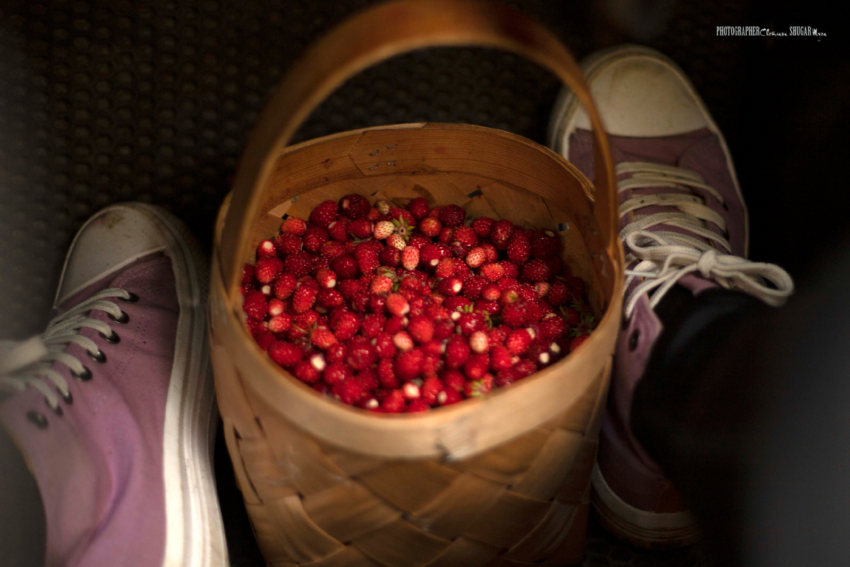Руки до локтей в землянике. Старый скитский тракт. Нижегородская область