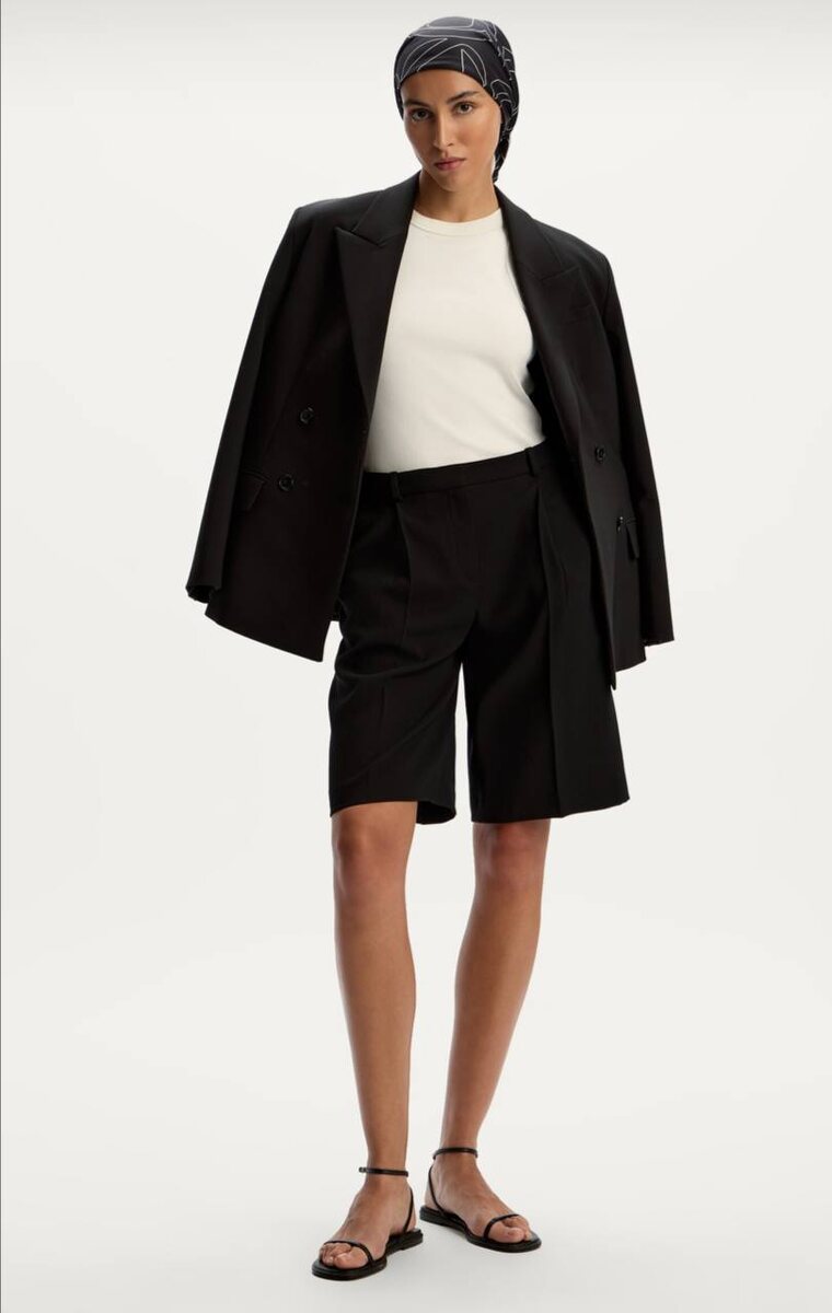 Это отличный выбор для тех, кто хочет выглядеть собранно и стильно даже в жаркую погоду. Шорты из костюмной ткани легко адаптируются под разные образы — от офисных до городских и даже вечерних.