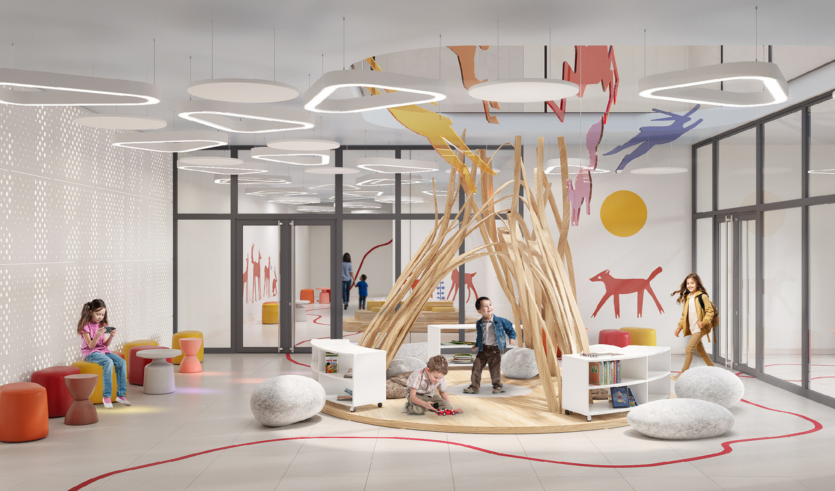 Задача: Мы стремились создать образовательное пространство, которое не только отвечало бы всем современным требованиям, но и глубоко укоренялось в истории места. Для детского сада в Красногорске стояла задача гармонично сплести прошлое и будущее, вдохновив детей на новые открытия.