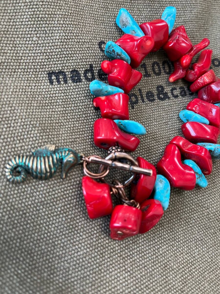 Не… ну тут конечно с пафосом 🤩 Добавит веса во всех смыслах 💪🏻 Крупные бусины коралла 🪸 и Иранская бирюза (не какая-то там в маленьких прессованных бусинках ) 😎👍🏻 Короче… весь удар принимает на себя ♥️🩵 ✍️🤳+79608555077 WhatsApp или Телеграмм #коралл #браслет #украшения
