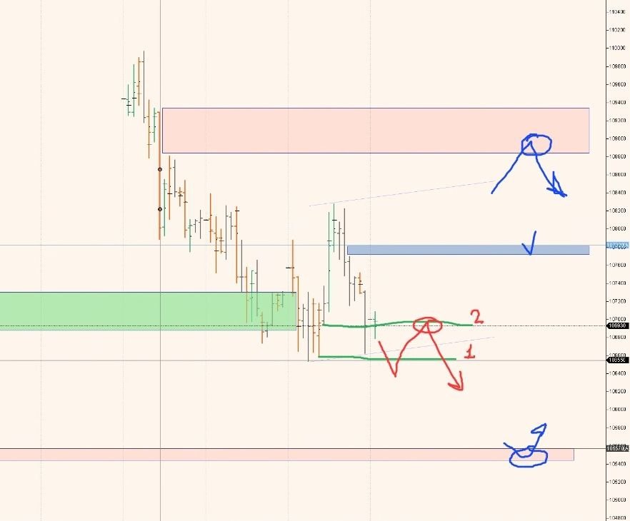 Ри, мои уровни на сегодня. По синим траекториям все как обычно. По красной пояснение - если цена уходит ниже уровня 1, то на обратном тесте уровня 2 (если он состоится) будет интересная точка для шорт с целью - самый нижний уровень. Не ИИР