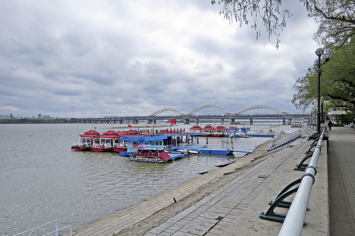 Дальше мы уже не ходили, полюбовавшись с изгиба реки дебаркадерами Даовая (так называется теперь Фуцзядянь) и пилоном моста Сунпу (2008-10, 4037м) через одноимённый остров: