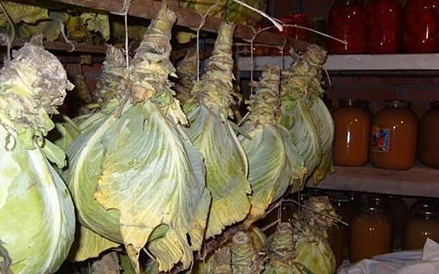 (Личный рекорд: в подвешенном состоянии капуста пролежала у меня до июня!)