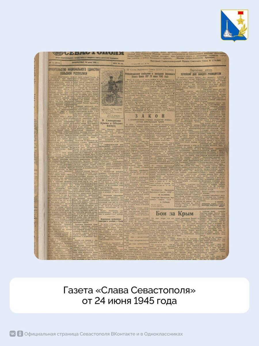 Исторический фотофакт дня: «Слава Севастополя» от 24 июня 1945