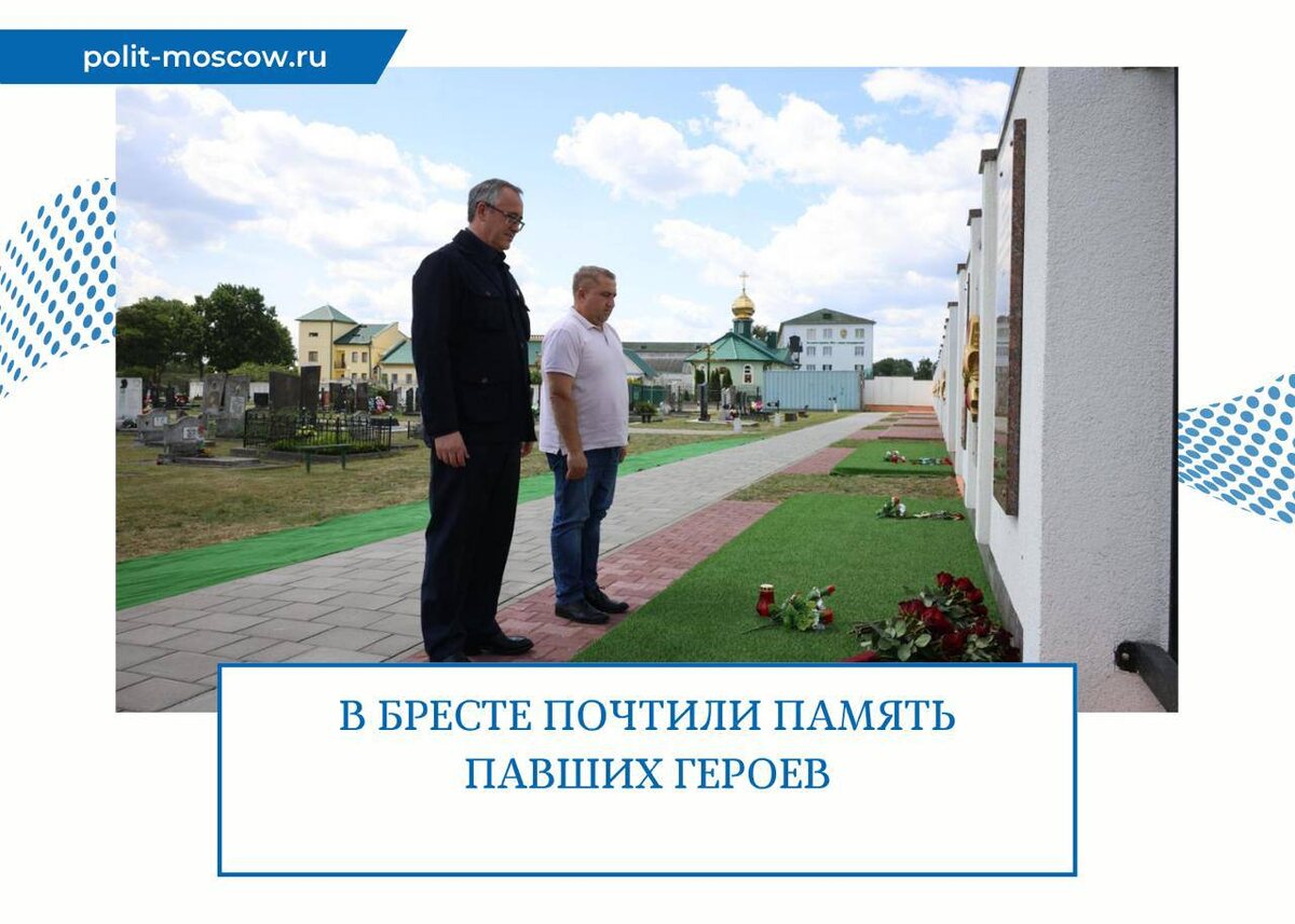 В Бресте почтили память павших героев На Гарнизонном кладбище в Брестской крепости почтили память героев, отдавших свои жизни за освобождение брестской земли. Среди них - уроженцы и жители Москвы. У мемориальной доски, установленной в честь 80-летия Великой Победы, возложили цветы в знак благодарности и уважения. «Связь народов России и Беларуси скреплена общей памятью о великом подвиге. Наши предки вместе защищали родную землю и освобождали города от фашистских захватчиков», - отметил председатель МГД Алексей Шапошников. Подвиг защитников Бреста - вечный символ стойкости и братства наших народов.
