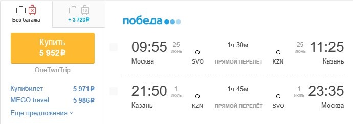 ✈️Москва - Казань, туда и обратно за 5950 рублей