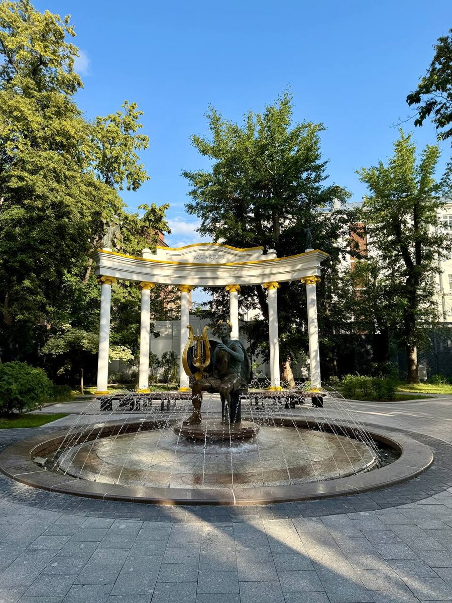 Погуляла в саду "Аквариум" около театра Моссовета: 🔵Маленький зелёный уголок рядом с шумным Садовым кольцом и Тверской улицей, где при этом всегда тихо и немноголюдно. Даже в половине седьмого вечера, когда зрители подтягиваются к спектаклям. 🏴Кстати, на расстоянии практически вытянутой руки сразу четыре театра: Моссовета, Сатиры, МОСТ и Практика + концертный зал им. Чайковского. 🔵В саду чудесная атмосфера старой Москвы: красивые кованые скамейки, фонтаны в театральной тематике и аккуратные дорожки. 🥐 Прогулку советую совместить с фирменными десертами в кафе "Чайковский" (мой отзыв тут). 🩵Милое место с историческим шармом, куда стоит заглянуть, если вы рядом. Отлично дополняет впечатление от посещения театра! 📍Около метро Маяковская. #прогулки@moskvichkatg