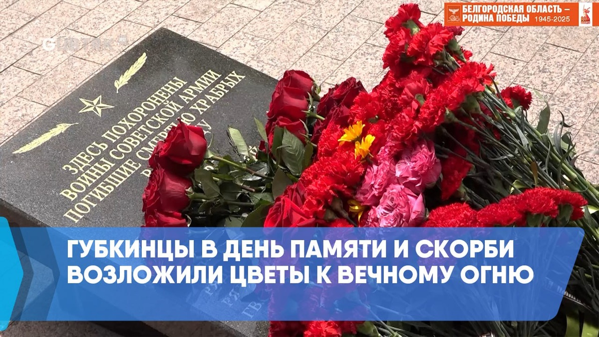 Губкинцы в День памяти и скорби возложили цветы к Вечному огню
