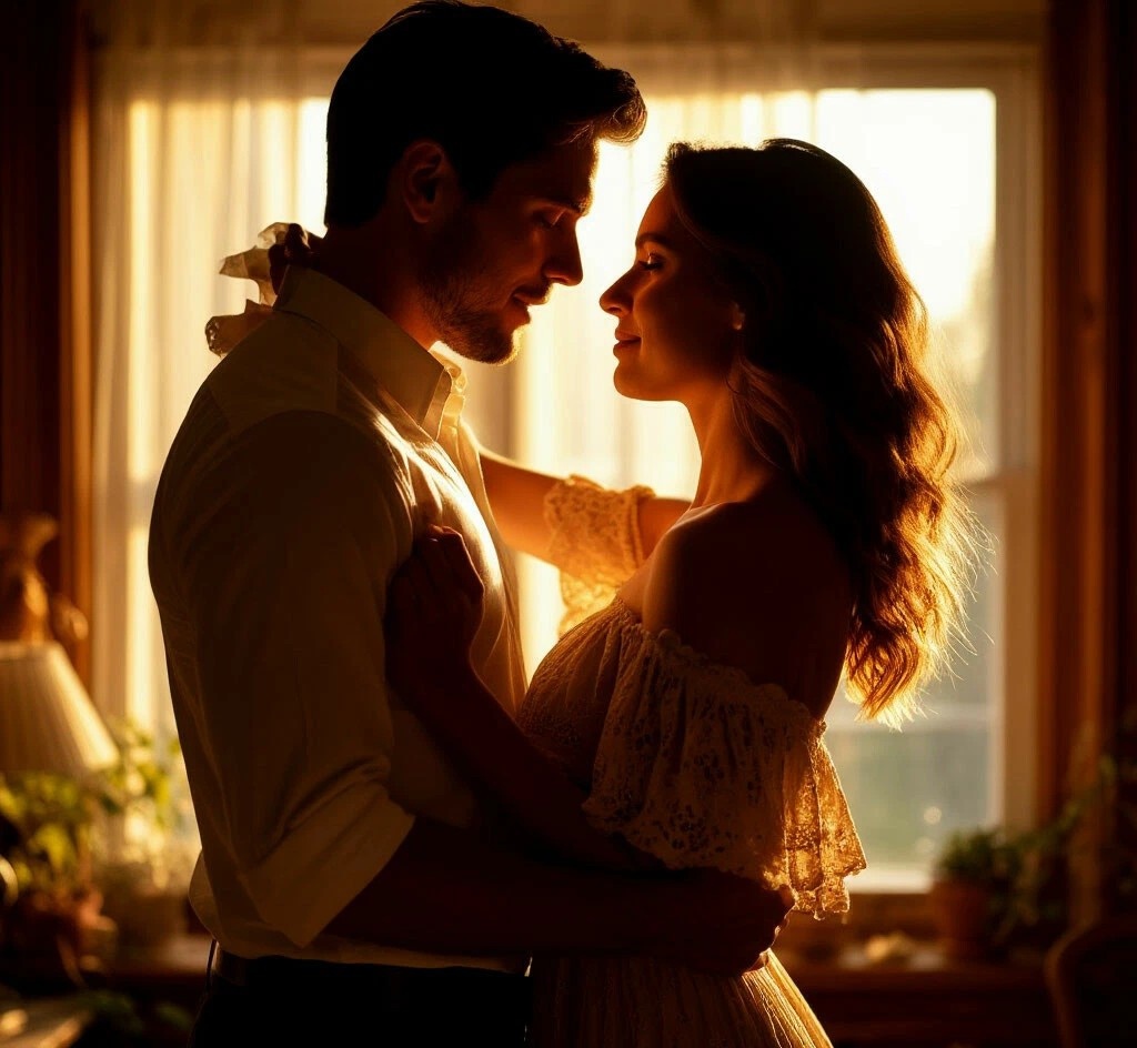 Тёплый свет лампы мягко растворялся в сумерках, смешиваясь с синевой заката за окном. В комнате пахло жасмином — то ли от её духов, то ли от ветерка, ворвавшегося с балкона. Они стояли близко, почти не дыша, пока из колонок лилась мелодия — томная, обволакивающая, как шёлк по коже. Её руки медленно скользнули по его плечам, пальцы коснулись ворота рубашки. Он ответил лёгким движением бедра, заставив её сделать шаг назад, к дивану. Музыка вела их, а они вели друг друга — без слов, только взгляды, только жар прикосновений.