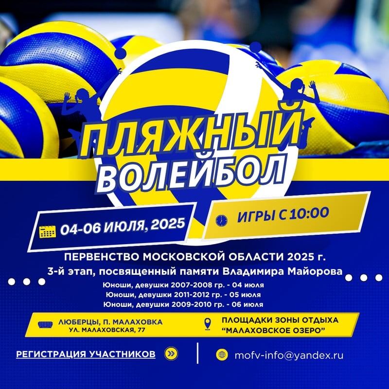 04-06 июля пройдет 3-й этап Первенства Московской области по пляжному волейболу, посвященный памяти Владимира Майорова Подробнее: https://sportvmoskve.ru/news/20250624-04-06-iyulya-proydet-3-y-etap-pervenstva-moskovskoy-oblasti-po-plyazhnomu-voleybolu-posvyaschenniy-pamyati-vladimira-mayorova/