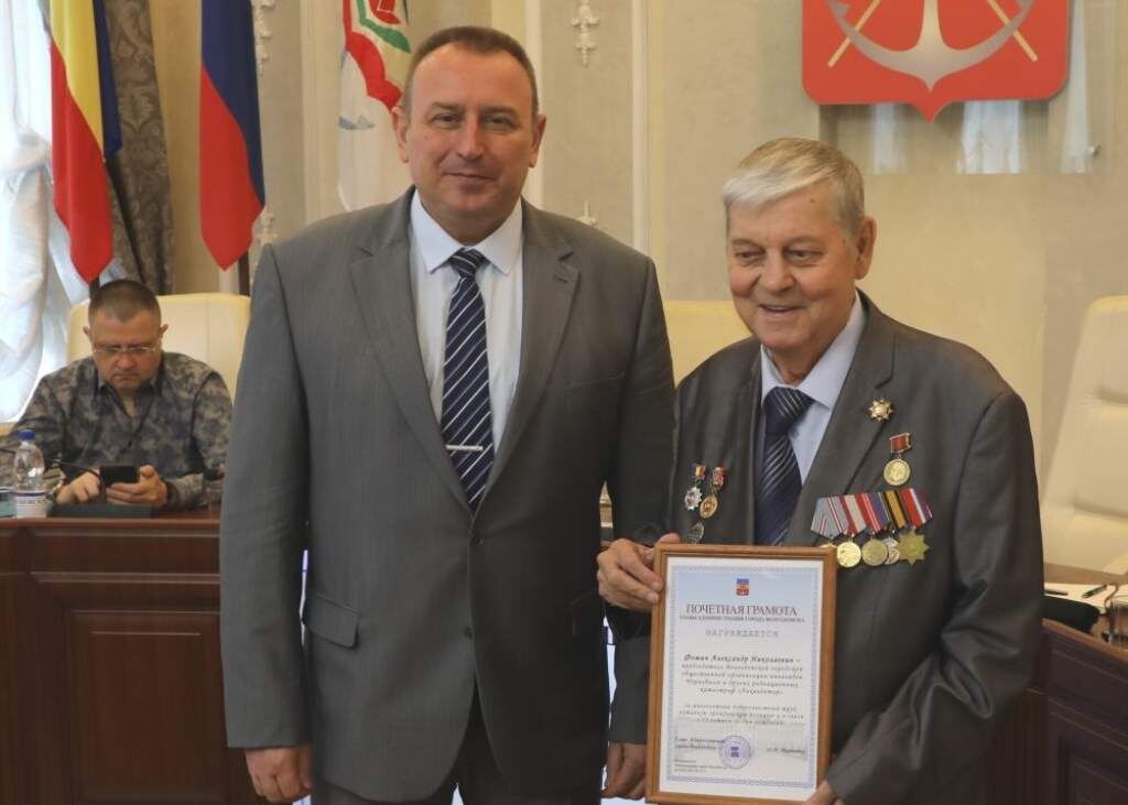 На планерном совещании в администрации города первые лица Волгодонска поздравили с 75-летним юбилеем Александра Фомина — бессменного председателя городской общественной организации инвалидов Чернобыля и других радиационных катастроф «Ликвидатор». От главы администрации Юрия Мариненко Александр Николаевич был поощрен за добросовестный труд и активную гражданскую позицию, от председателя городской Думы Сергея Ладанова – за многолетнюю активную работу по защите законных прав чернобыльцев. Александр Фомин, уроженец Новошахтинска, служил в ВМФ, учился в Каспийском высшем военно-морском Краснознаменном училище им. С.М. Кирова в Баку. В Волгодонске с 1979 года, работал капитаном-механиком теплохода «Зарница», бурильщиком в «Союзгидроспецстрое», участвовал в строительстве Атомаша и Ростовской АЭС. После Чернобыльской катастрофы принимал участие в строительстве «стены в грунте» вокруг четвертого блока. А в 1992 году вместе с единомышленниками основал Волгодонскую общественную организацию «Ликви