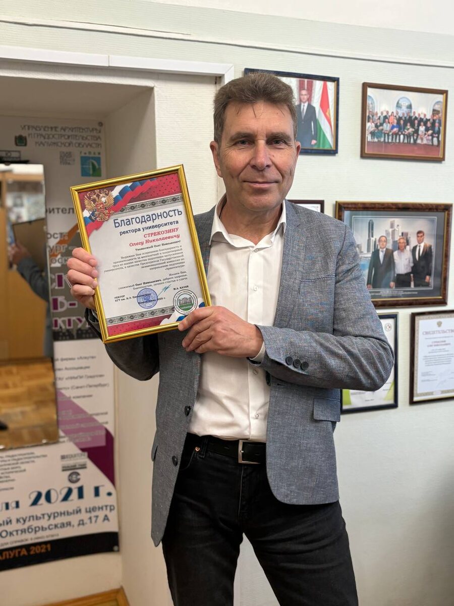Особенную радость доставило признание моей личной работы, отмеченное благодарственным письмом руководителя университета за многолетний и плодотворный труд по оценке качества подготовки выпускников университета в качестве председателя государственной экзаменационной комиссии по направлению «Архитектура».