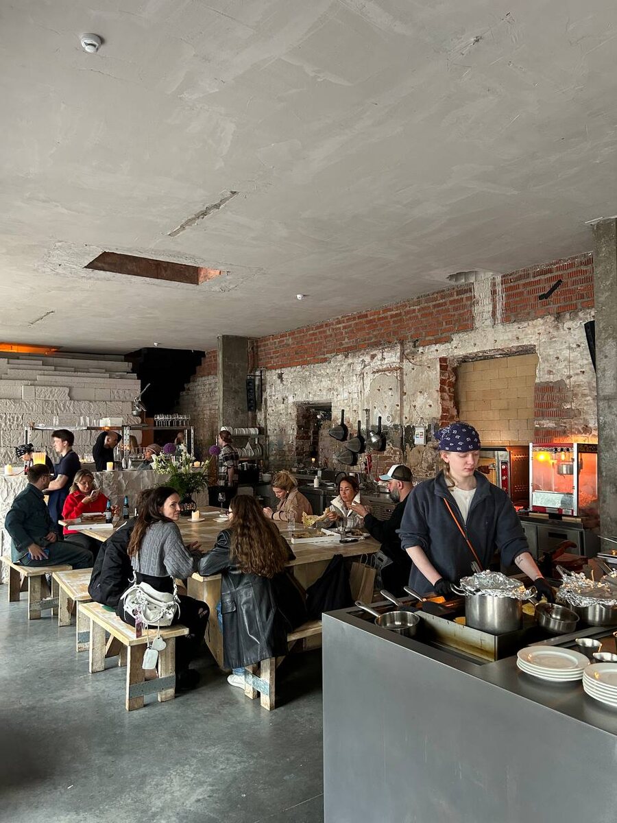 Зашел в выходные в «Автомойку». Выглядит крайне модно, как какой-то древний храм в «Звездных Войнах»: грубые бетонные блоки, лампочки, провода и инструменты на стенах. Музыка ровно такая, какая в этом храме и звучала бы, но можно выйти во двор. Публика тоже эстетская.