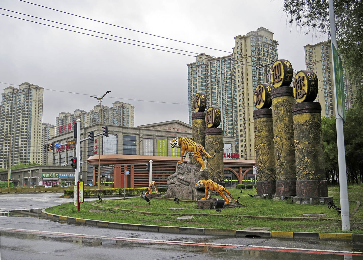 Тигровые парки есть близ Хэндаохэцзы, в у горы Маоэршань и - здесь, прямо в Харбине. Созданный в 1986 году, тогда ещё за городом, питомник начинался с 8 особей, а через 10 лет, когда их стало 80 - открылся для туристов. Теперь прямо в городе живёт около 300 зверей, не считая сделанных на все лады скульптур и инсталляций. Площадь встречает списанными тигробусами (о них - позже) времён основания Парка, антропоморфный Тигрик указывает путь, а отобедать можно в забегаловке харбинской сети "Толстый Тигр".