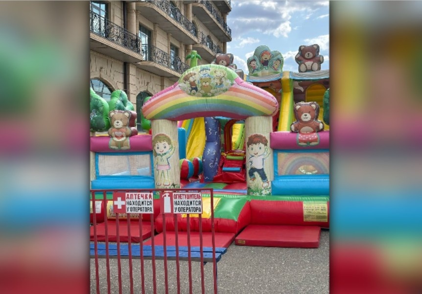 Астраханская служба гостехннадзора во время очередного рейда обнаружила на центральной набережной реки Волга незаконно установленный детский аттракцион - «Батут надувной». Располагается он непосредственно на проезжей части, перекрывая движение не только машинам, но и пешеходам. К слову, перекрывает он и въезд в новый элитный ЖК, названный в честь улицы.