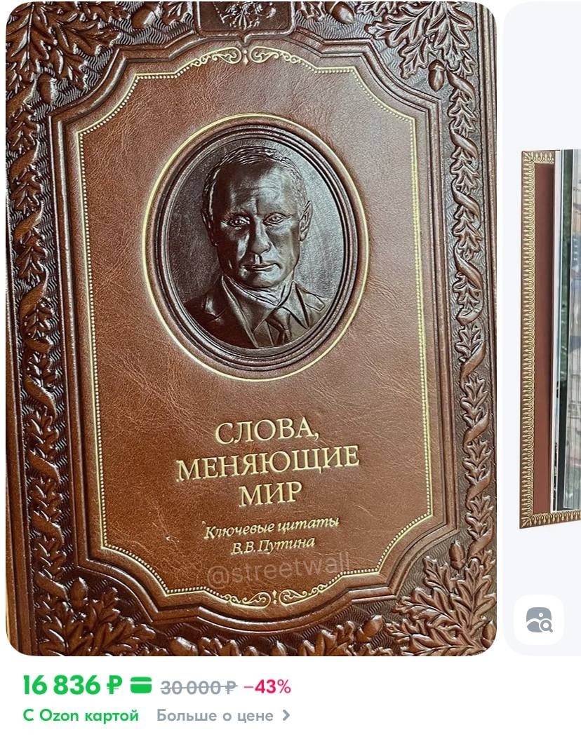 На маркетплейсах появился сборник цитат Путина в кожаном переплёте за 17 000 ₽. Продавцы называют его «книгой, изменившей мир» — но так ли это на самом деле? 🤔" https://dzen.ru/id/65d0bd2d3933641137a41b90 #Маркетплейсы #Книги #Путин #Цитаты #ДорогоБогато #ПроверяйтеФакты 📚🔍