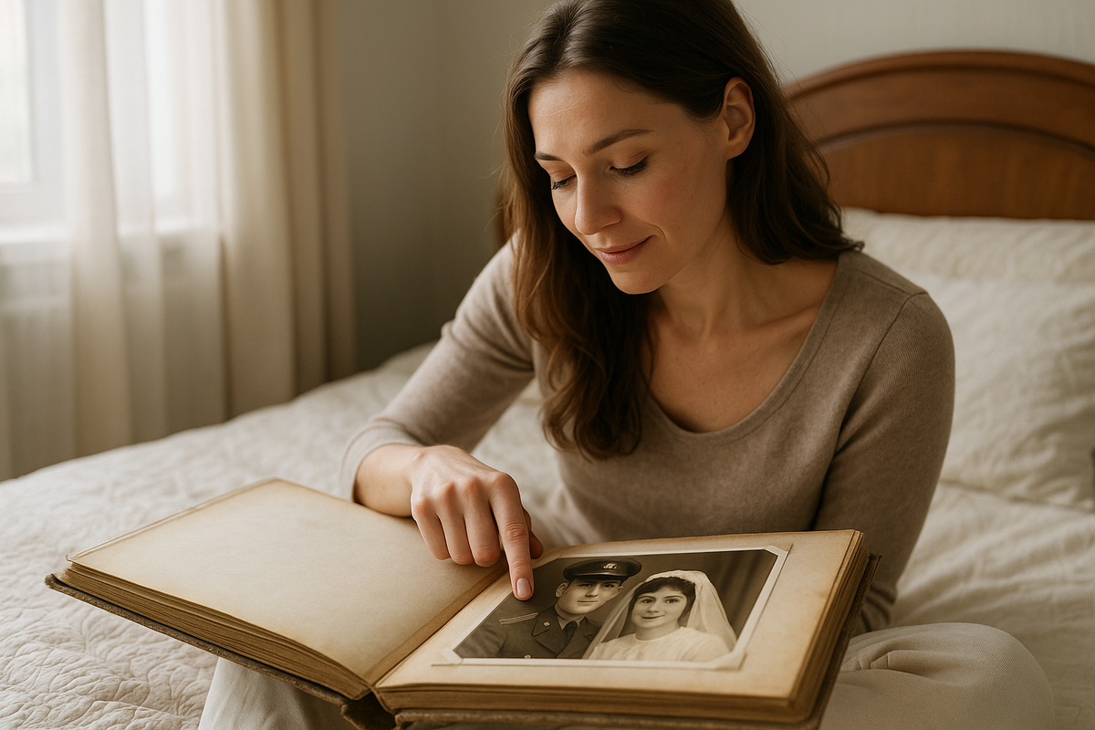 Потом долго сидела в тишине, держа альбом на коленях. За окном шел дождь, стучал по стеклу мелкими каплями. Луиза думала о том, как много мы не знаем о людях, которые нам дороги. Как много боли они несут молча, чтобы не ранить нас.