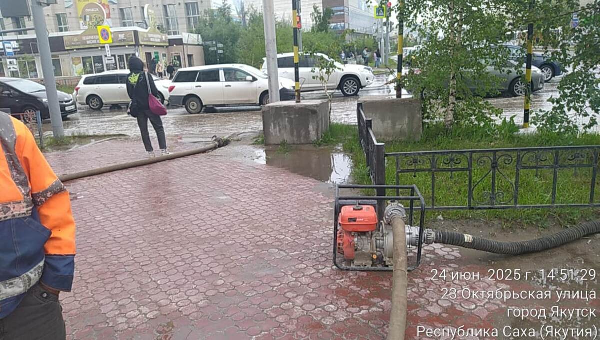 💦 Откачку воды из уличных лотков усилили в Якутске после проливного дождя