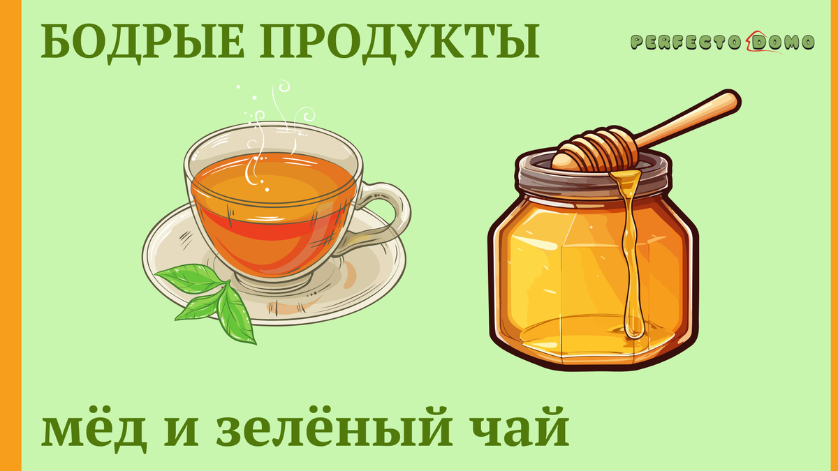 Завариваем зеленый чай и съедаем пару чайных ложек меда.