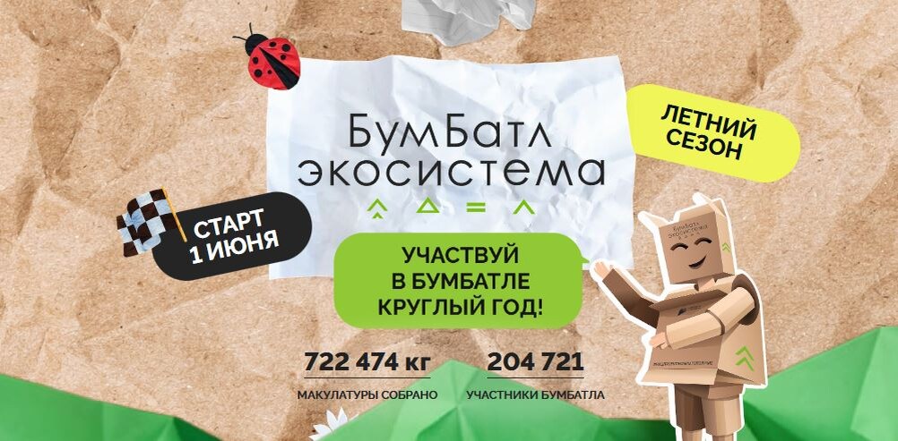 ♻️Департамент недропользования и экологии Тюменской области информирует о старте конкурса креативных постов о Всероссийской акции по сбору макулатуры «БумБатл». Конкурс проводится в 3 этапа: - летний — с 1 июня по 31 августа 2025 года; - осенний — с 1 сентября по 30 ноября 2025 года; - зимний — с 1 декабря по 28 февраля 2026 года. Экологический проект «БумБатл» проводится в Тюменской области в поддержку национального проекта «Экологическое благополучие». Инструкция по участию: - пройдите регистрацию на официальном сайте проекта бумбатл.национальныепроекты.рф; - выберите на интерактивной карте ближайший пункт приема, отнесите макулатуру; - взвешайте собранное сырье, сфотографируйте и заполните форму в личном кабинете участника на сайте акции, приложив акт о сдаче вторсырья (при наличии) или фотографию собранной макулатуры; - расскажите о своем участии в акции в аккаунтах вашего учреждения/организации в социальных сетях (хештеги акции: #бумбатл, #экосистема, #нацпроектэкоблагополучие)
