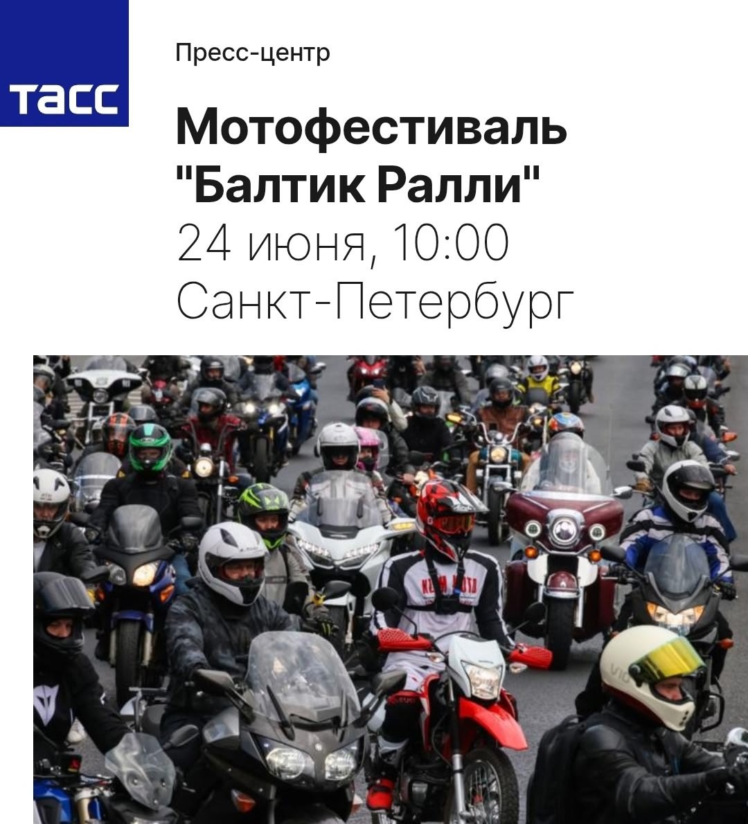 🔁 Дальняк.рф™: 📢Сегодня в 10:00 состоится Пресс-конференция в ТАСС в преддверии старта Патриотического Мотопробега! Ссылка на прямой эфир: 👉 https://tass.ru/press/26953 НЕ ПРОПУСТИТЕ💥 🤩 Старт уже завтра - 25 июня с острова Русский! О программе и участниках расскажут Заместитель Председателя Правительства Ленинградской области – Председатель комитета по сохранению культурного наследия Владимир Цой и Координатор мотофестиваля "Балтик Ралли" Игорь Щербаков .