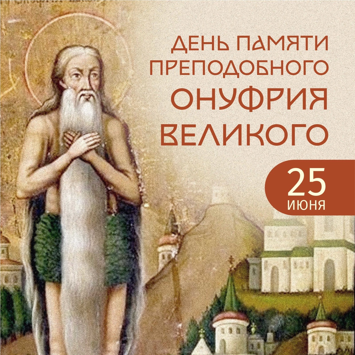 25 (12) июня Православная церковь отмечает память преподобного Онуфрия Великого – одного из египетских монахов-пустынников, подвизавшегося в IV в. Биографические сведения о святом противоречивы, скудны и известны из нескольких версий его жития, в основе которого лежит рассказ инока Пафнутия, повстречавшего его накануне кончины. По преданию, Онуфрий происходил из персидского царского рода, с детских лет воспитывался в монастыре Эрити поблизости от Гермополя. Подробнее рассказали в карточках: