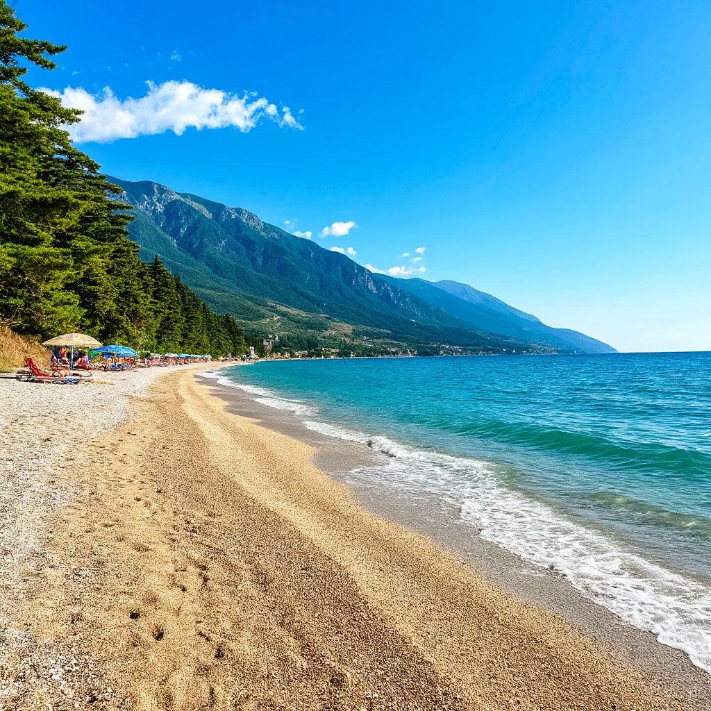 Краткое описание: Песчаный пляж с минимальными вкраплениями гальки, популярный среди местных жителей.