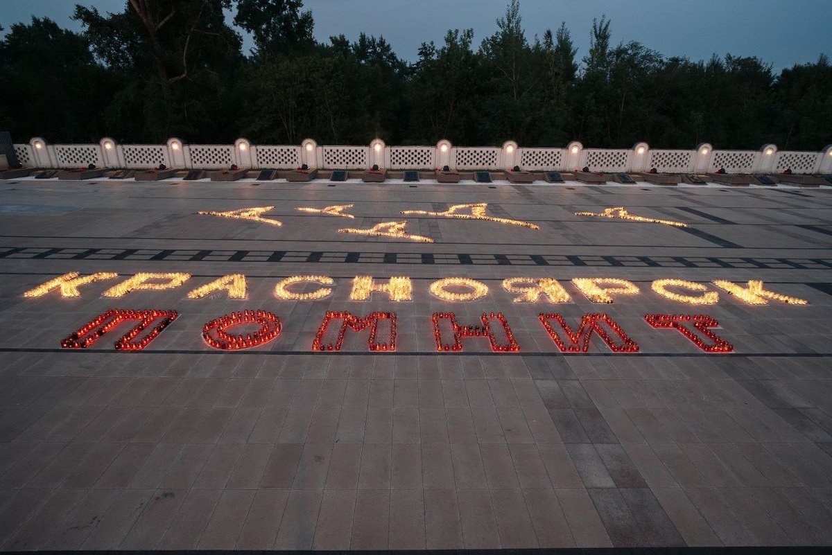 🕯️ КРАСНОЯРСК ПОМНИТ!🕯️ В городе прошла акция свеча памяти. Красноярцы зажгли огни благодарности и скорби в честь героев Великой Отечественной войны - тысячи свечей объединились в световую инсталляцию летящих журавлей и надпись «Красноярск помнит». Накануне такую световую картину создали красноярцы на площади Победы. 🕊️- ПОМНИМ!