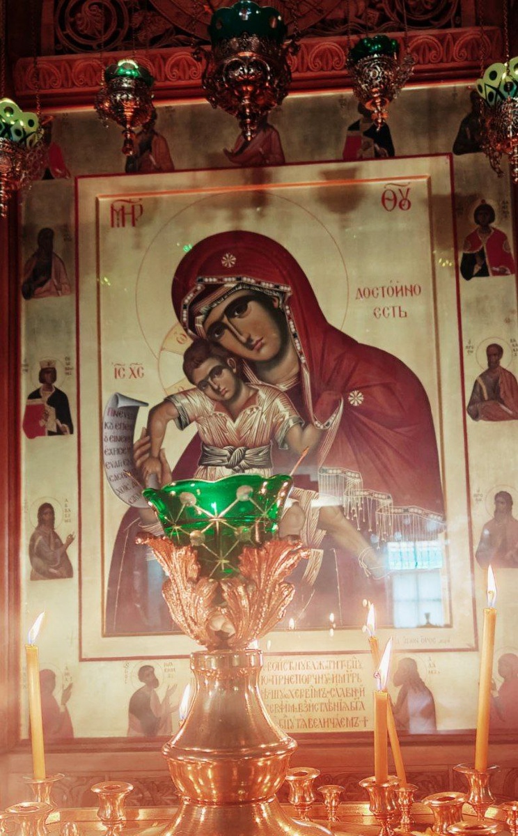 Тропарь Пресвятой Богородице пред иконой Ее «Достойно есть» (Милующей)