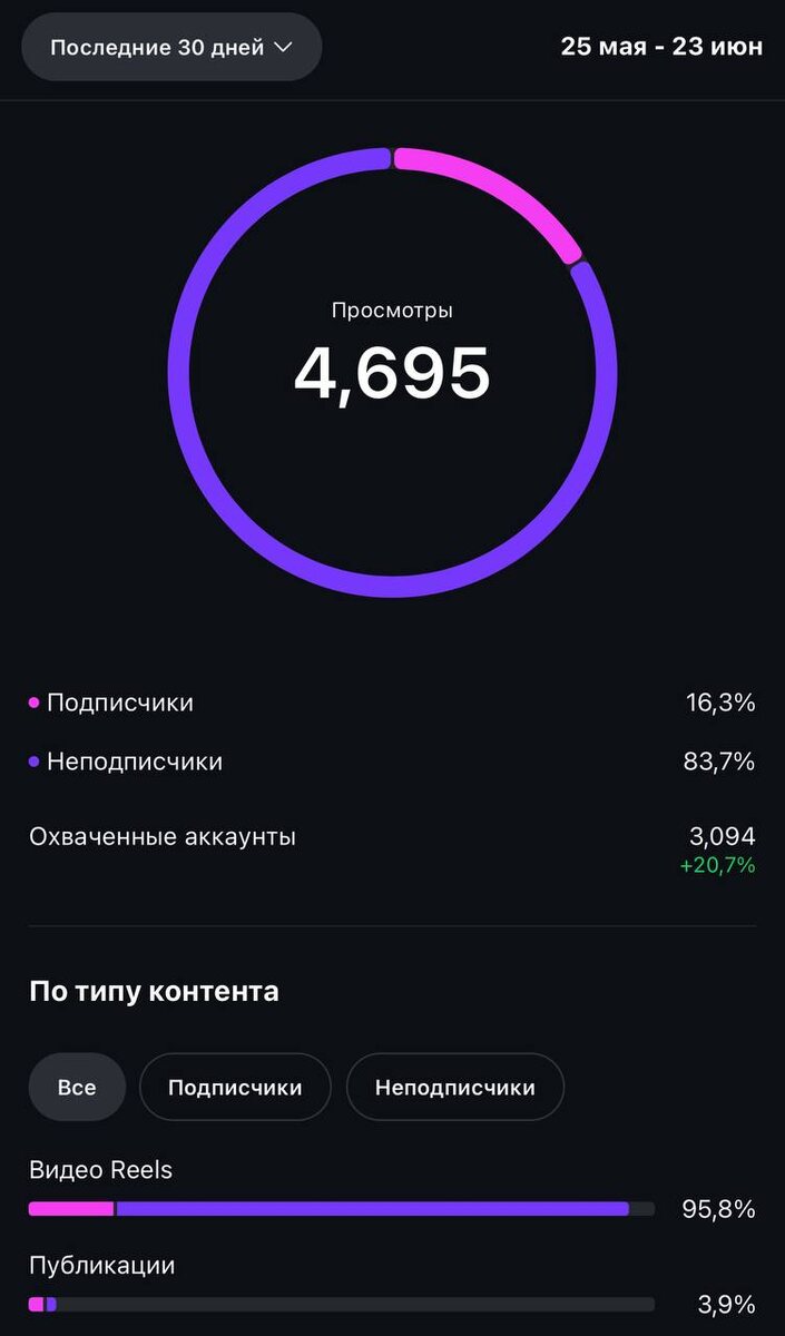 ✅По традиции ДЕЛИМСЯ РЕЗУЛЬТАТАМИ ➕4700 общих охватов акаунта в инсте (каждый день идет рост на 1000 человек) Залетевший рилс на ➕1600 просмотров на YouTube shorts На самом деле, на YouTube я особо не рассчитывал, потому что он нам сомнительные результаты давал по работе с другими проектами! НО вуаля! начал размещаться и охваты пошли даже больше чем в инсте) На данном этапе, мы выявляем систему, которая будет давать ОРГАНИЧЕСКИЙ РОСТ подписчиков в канал по экспертным тематикам! То, что выявлено на данный момент: — Системный подход дает рост — Количество размещаемых видео в сутки влияет на охваты — Чтобы аудитория переходила в другие каналы (например тг), нужно тестировать разные продукты и стимулировать желание перейти Система работает, сейчас дорабатываем воронку и поднимаем ценность в самих видео, чтобы простимулировать желание аудитории переходить на другую площадку! Гипотеза отрабатывает на УРА💎 Двигаемся дальше))